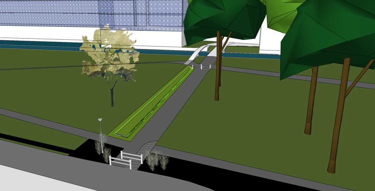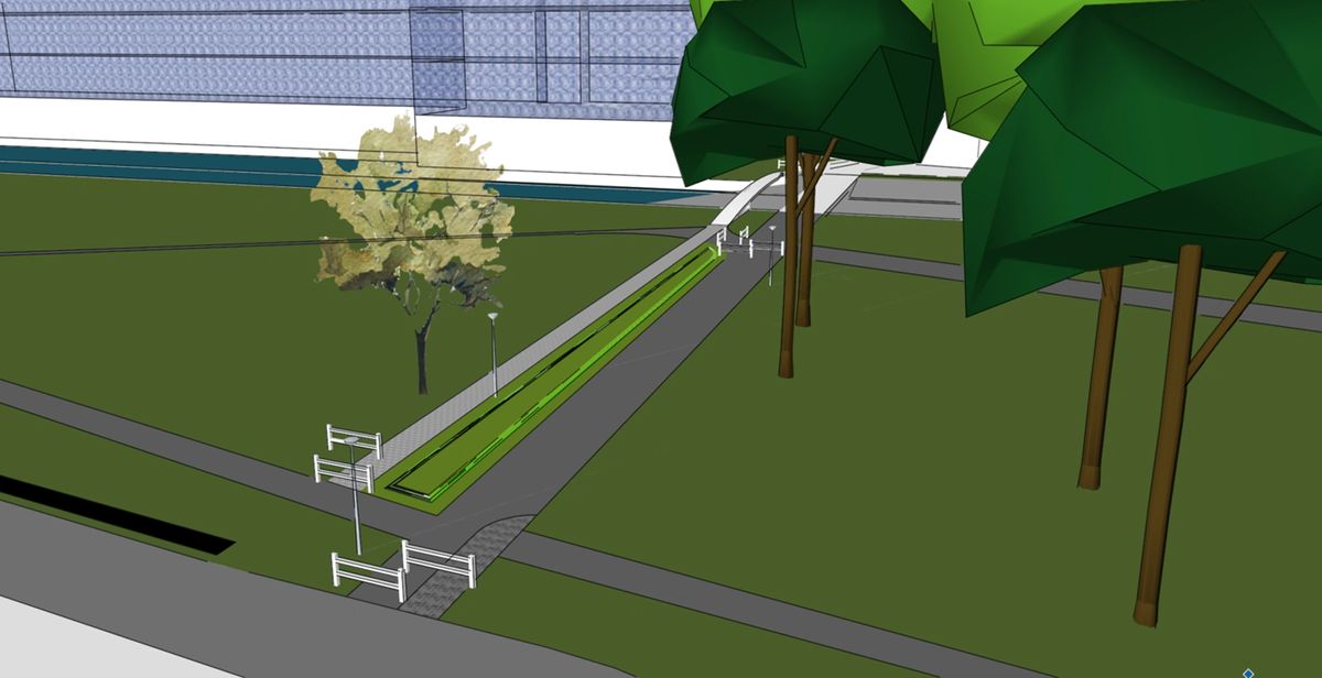 - Langs het wandelpad aan de oostkant van het park komen extra plantenstroken en een bloementuin.